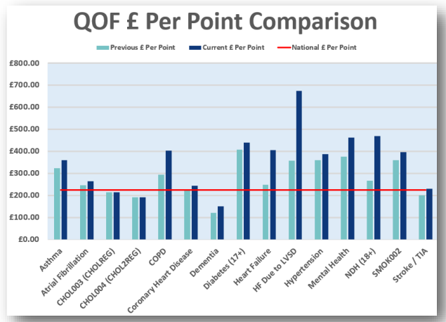 - Increased practice QOF income by just shy of £22,000